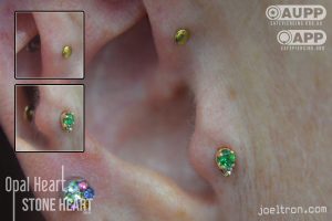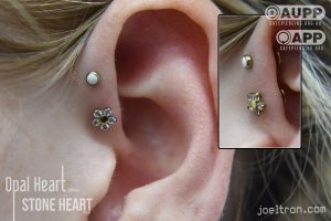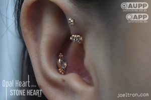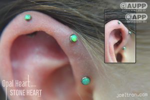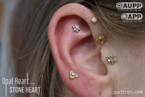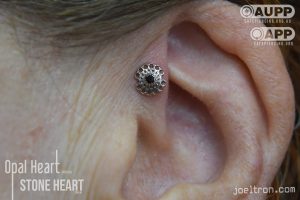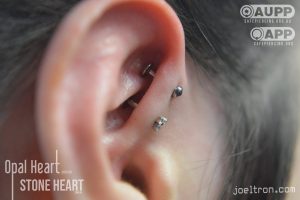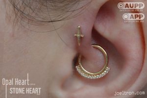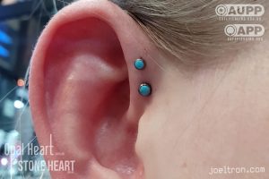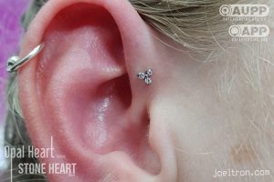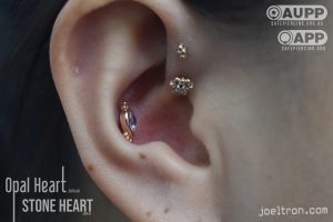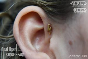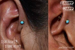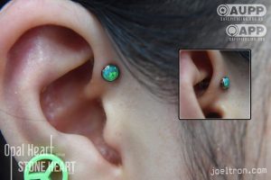 Worried about the pinch? Don’t be! While the cartilage here is firm, most clients find the sensation to be a quick, sharp “zap” that’s over quickly. We start you off with an implant-grade, flat-back stud to ensure maximum comfort and a smooth healing journey.