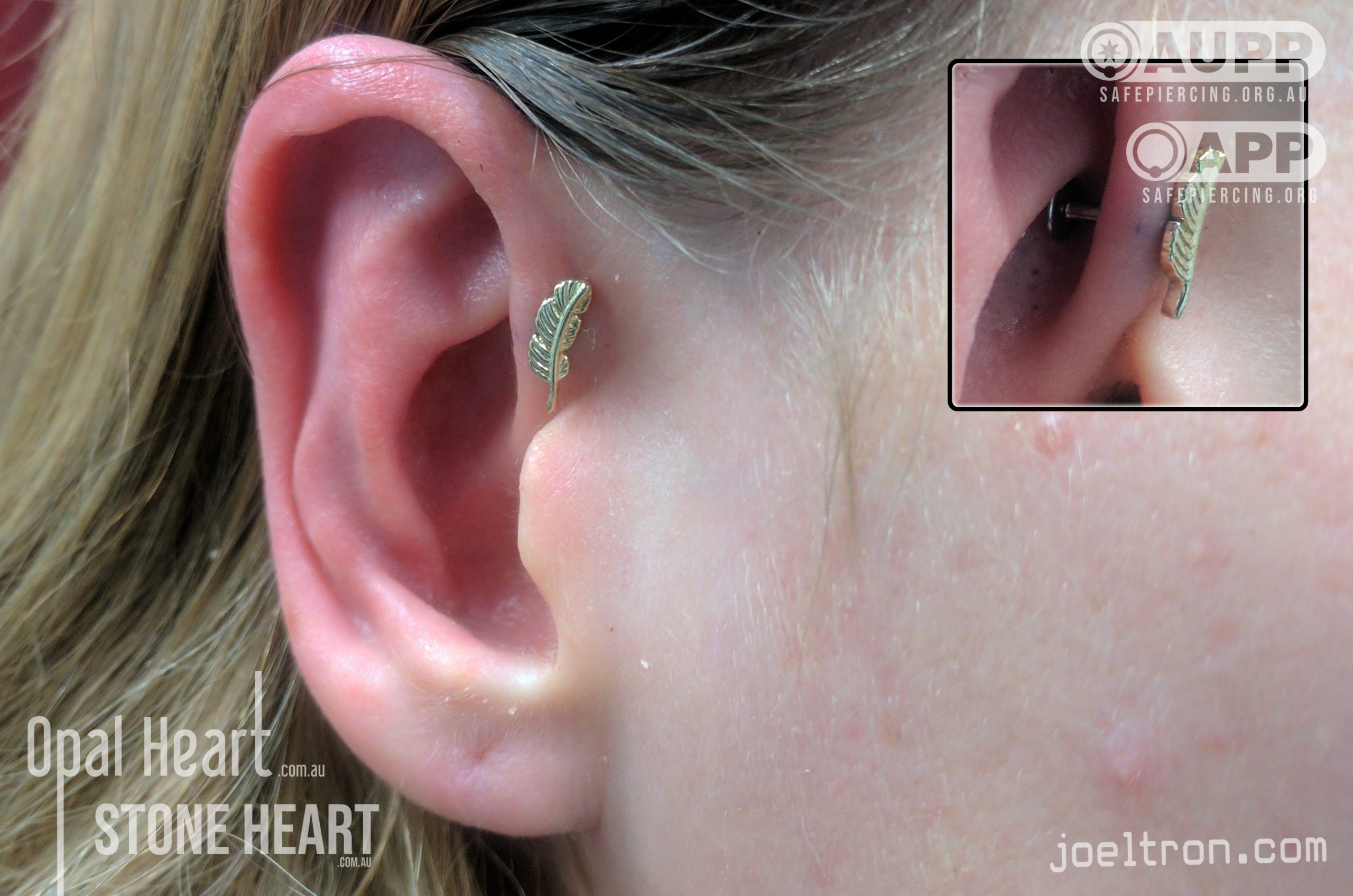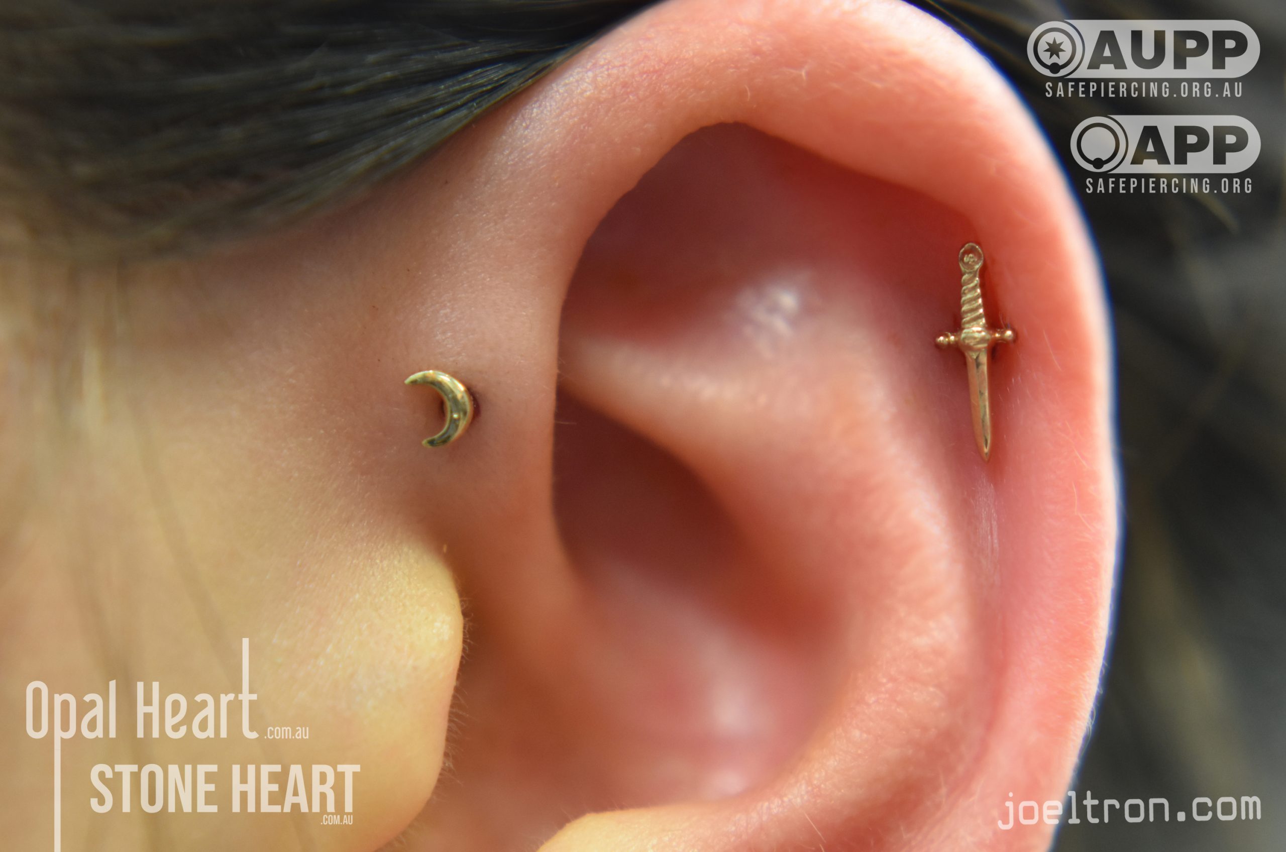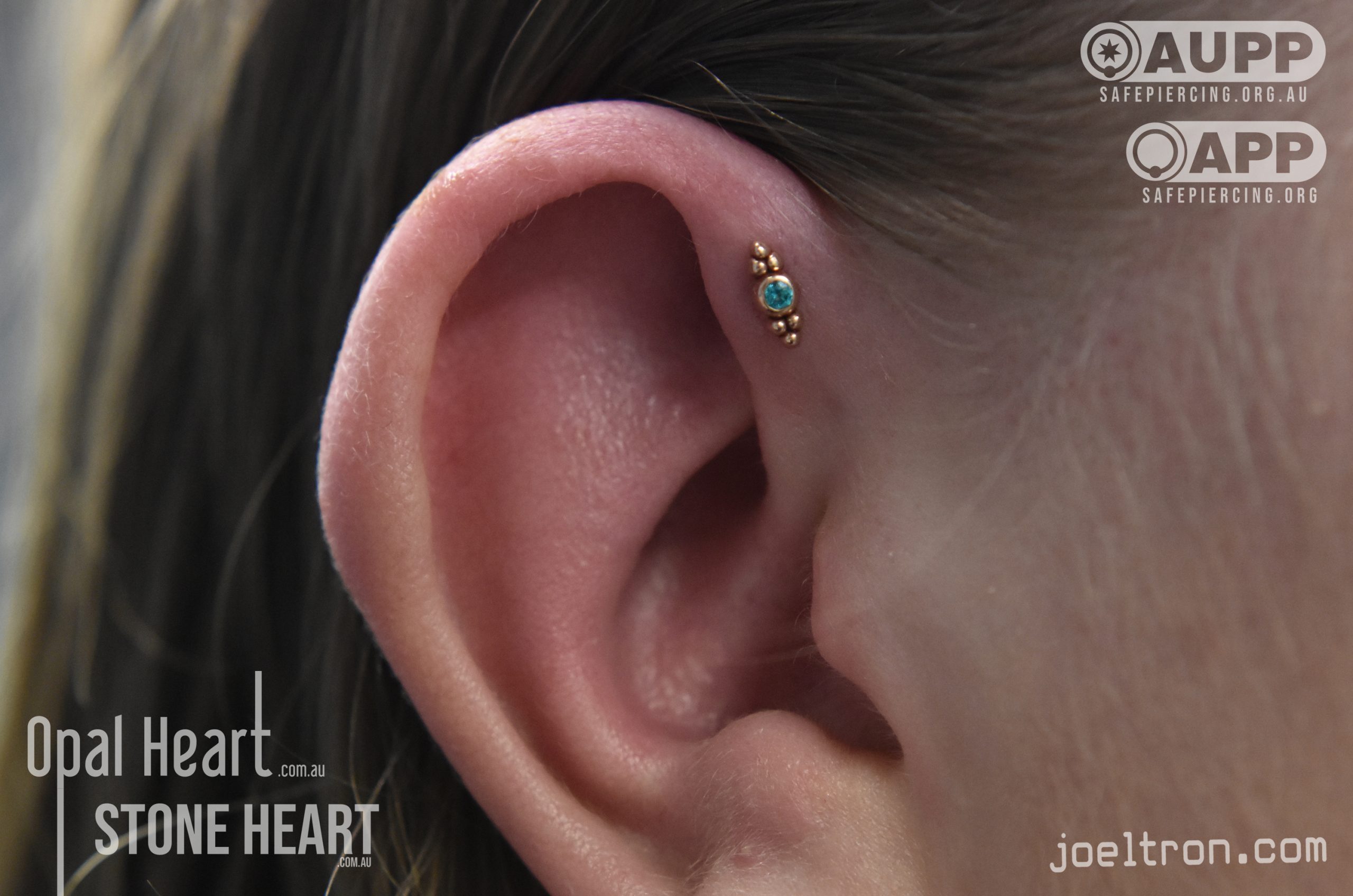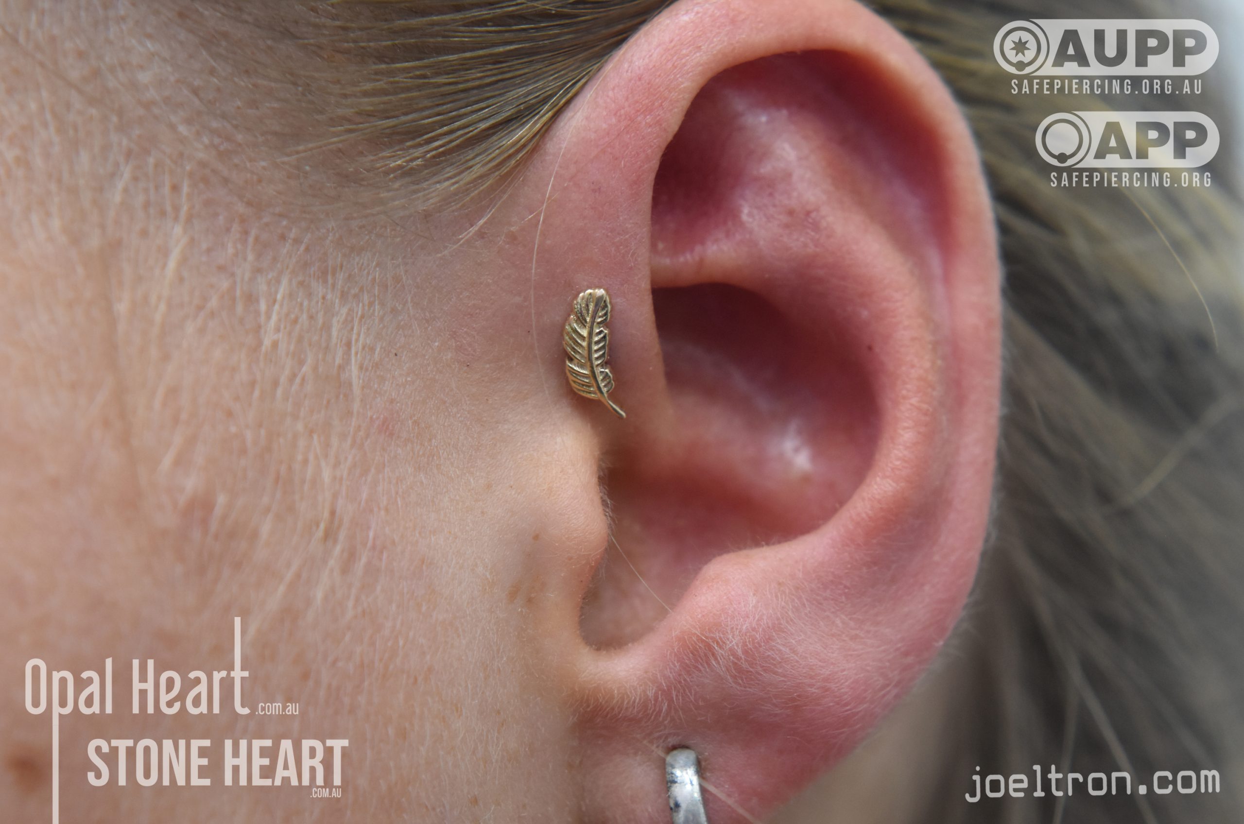 Worried about the pinch? Don’t be! While the cartilage here is firm, most clients find the sensation to be a quick, sharp “zap” that’s over quickly. We start you off with an implant-grade, flat-back stud to ensure maximum comfort and a smooth healing journey.