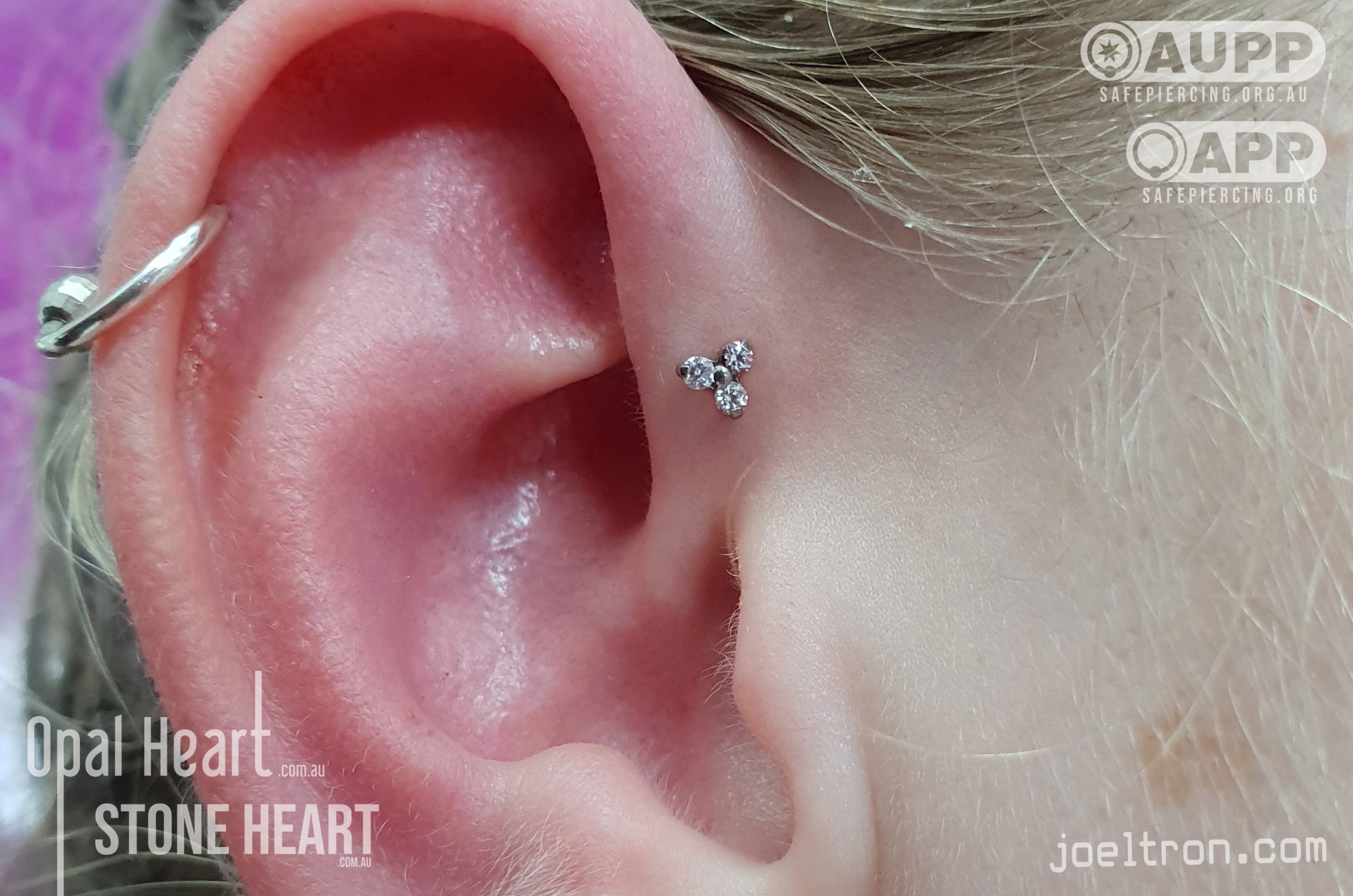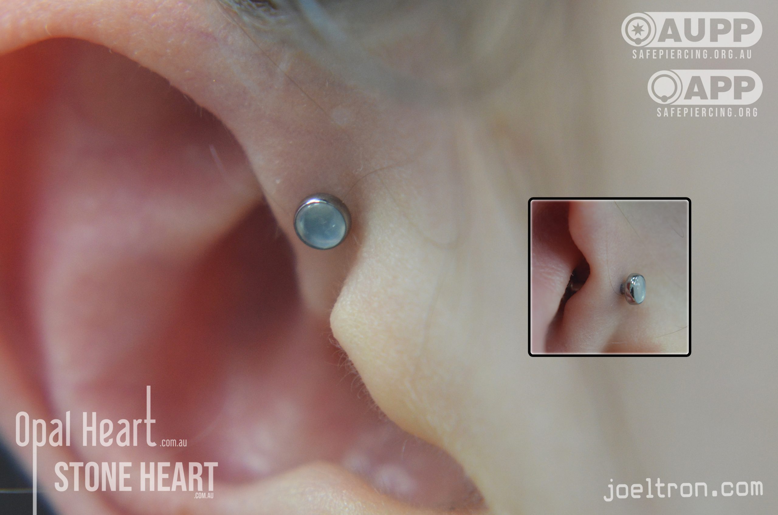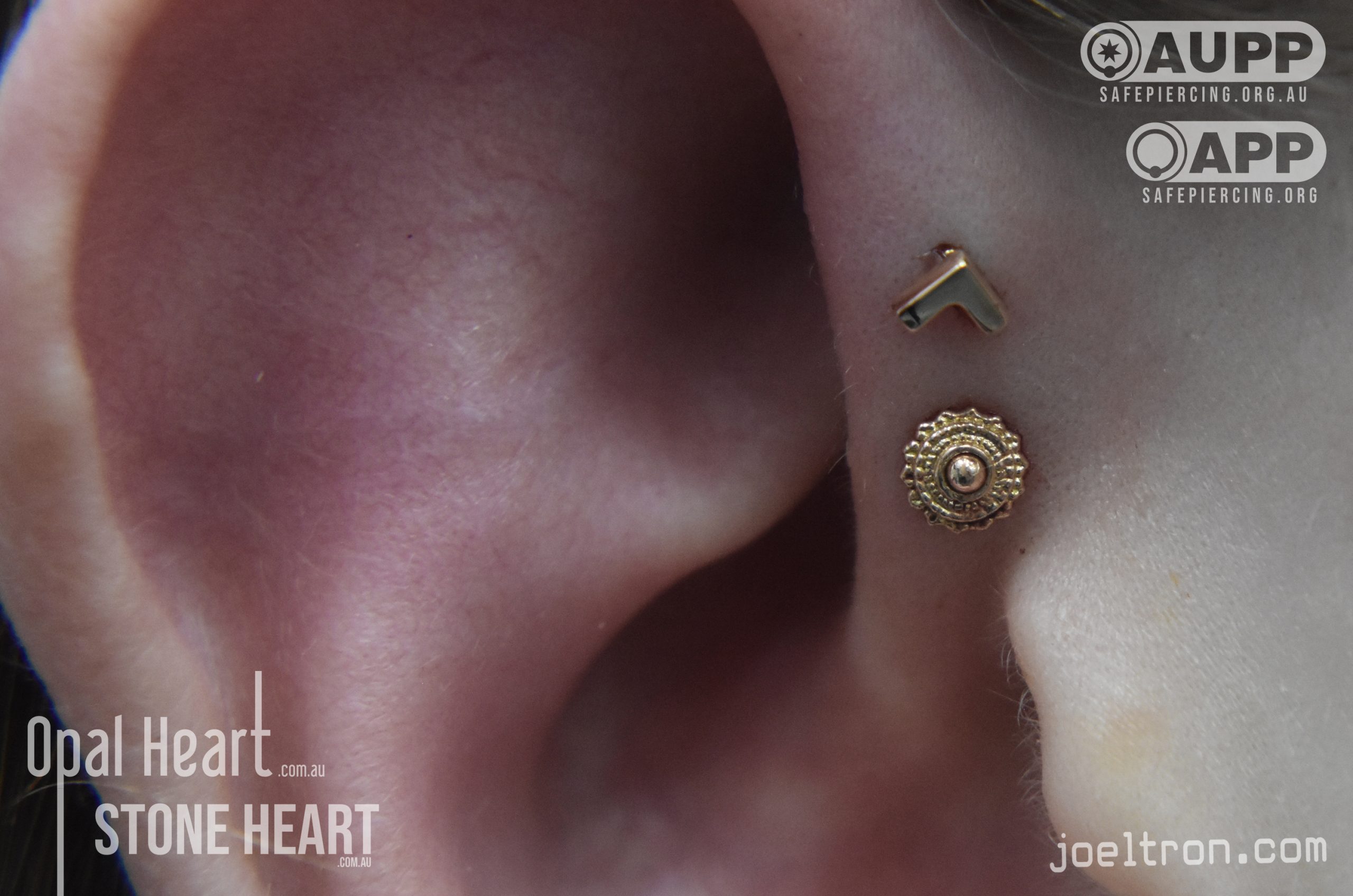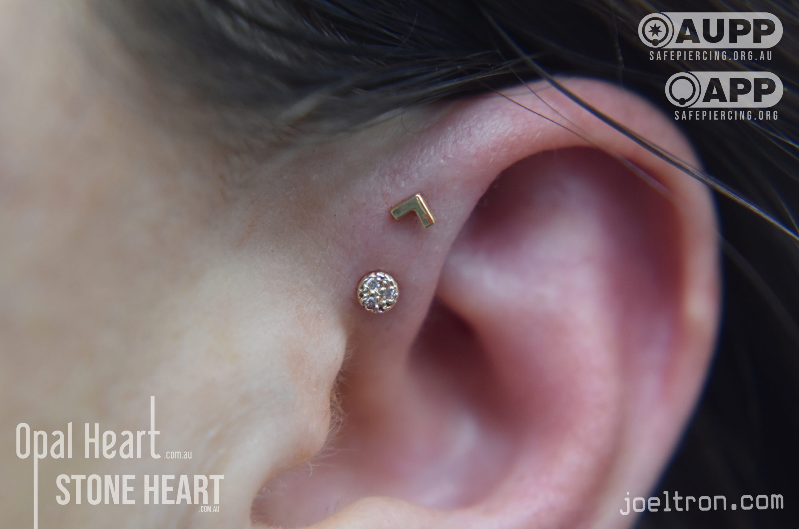 Worried about the pinch? Don’t be! While the cartilage here is firm, most clients find the sensation to be a quick, sharp “zap” that’s over quickly. We start you off with an implant-grade, flat-back stud to ensure maximum comfort and a smooth healing journey.