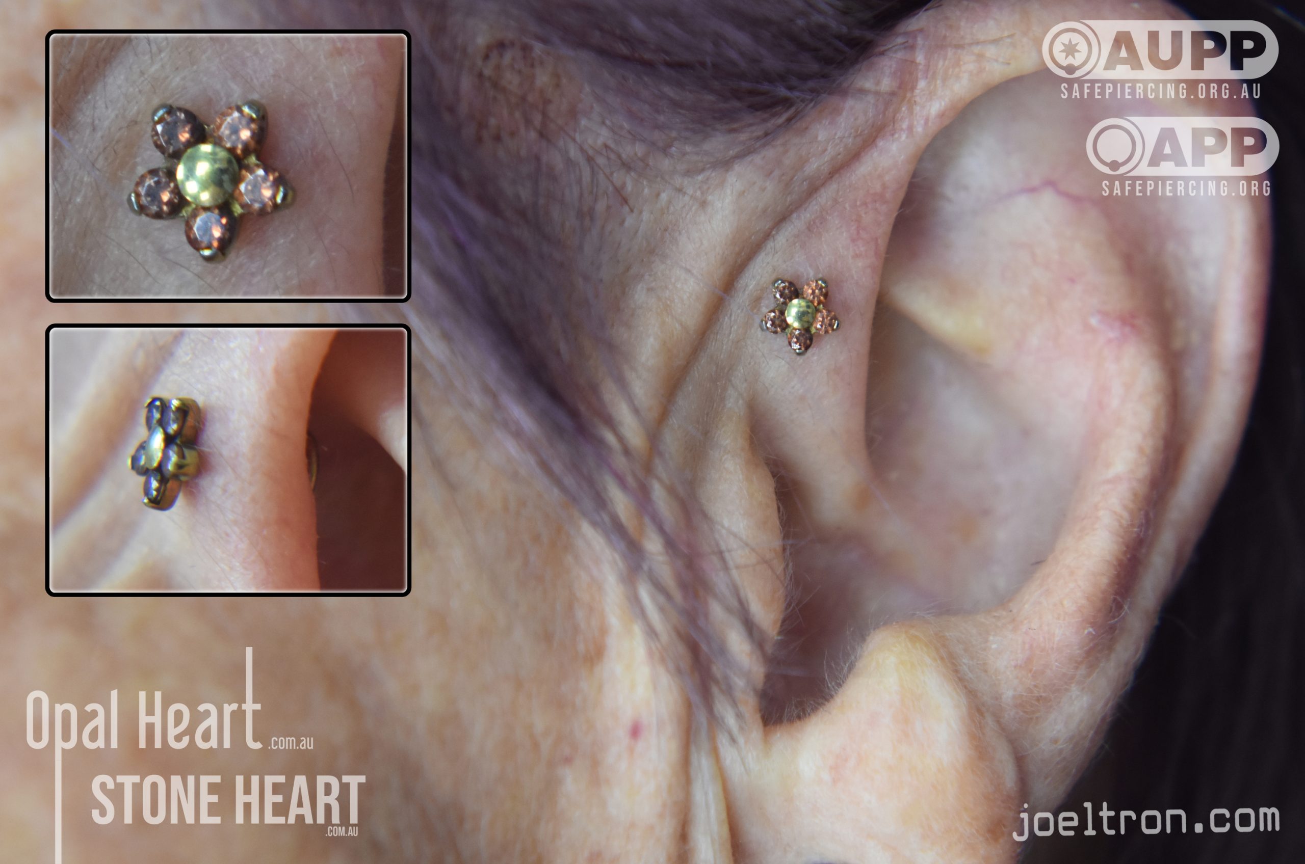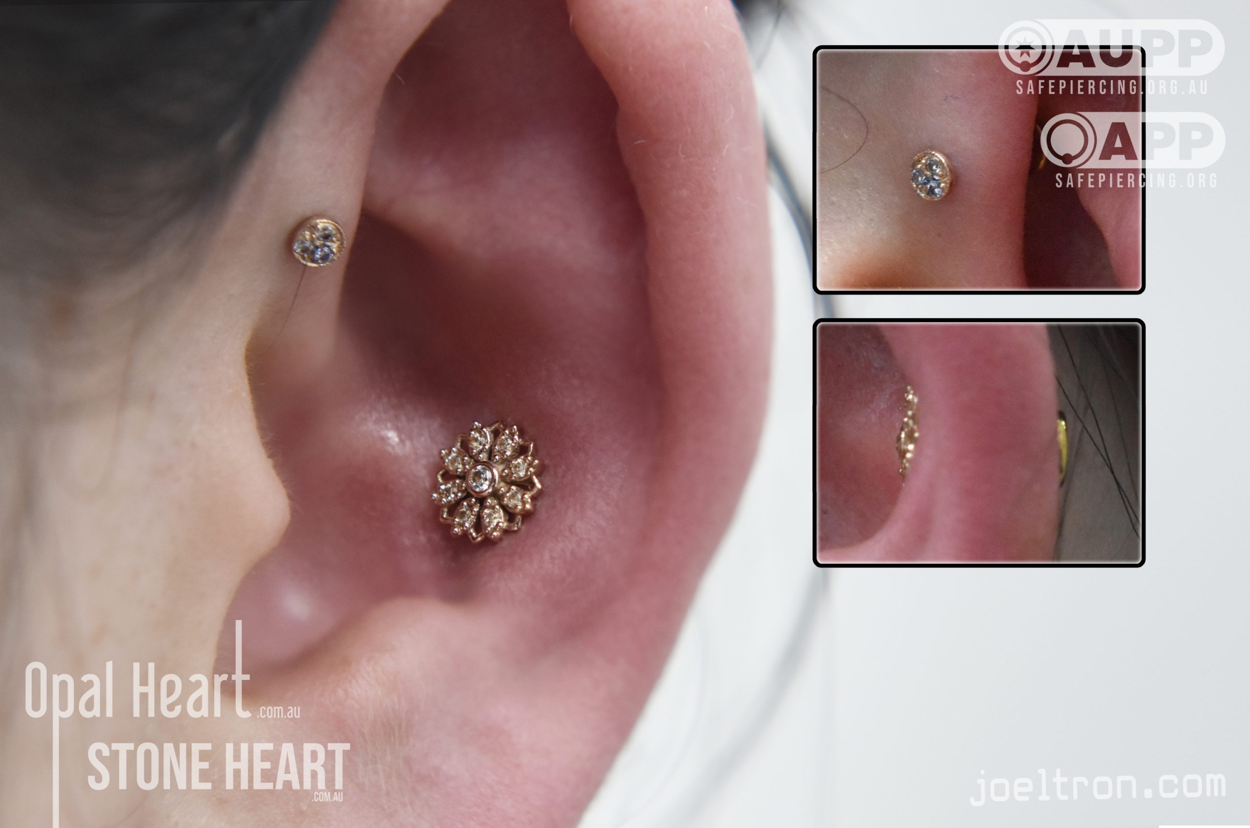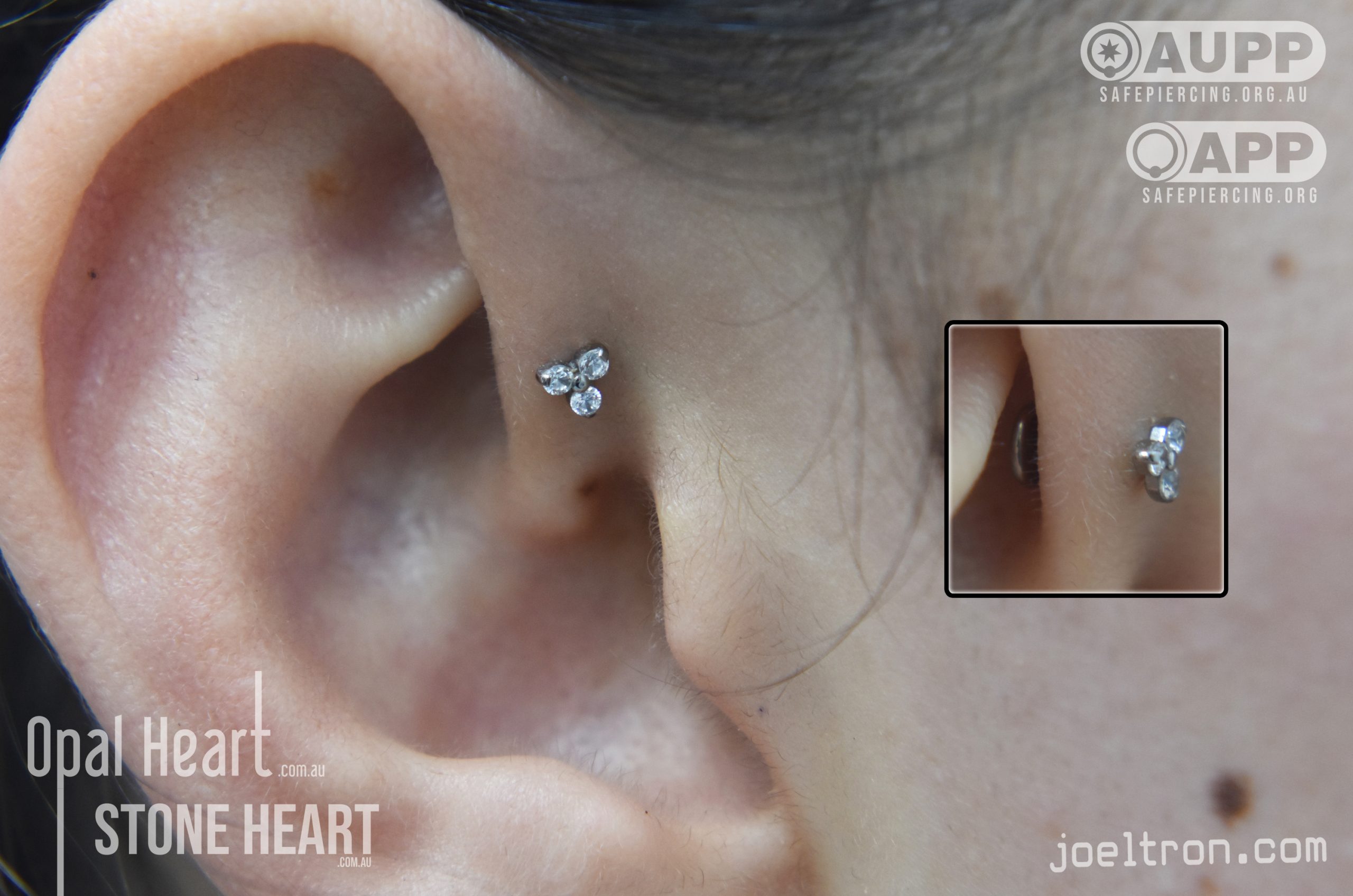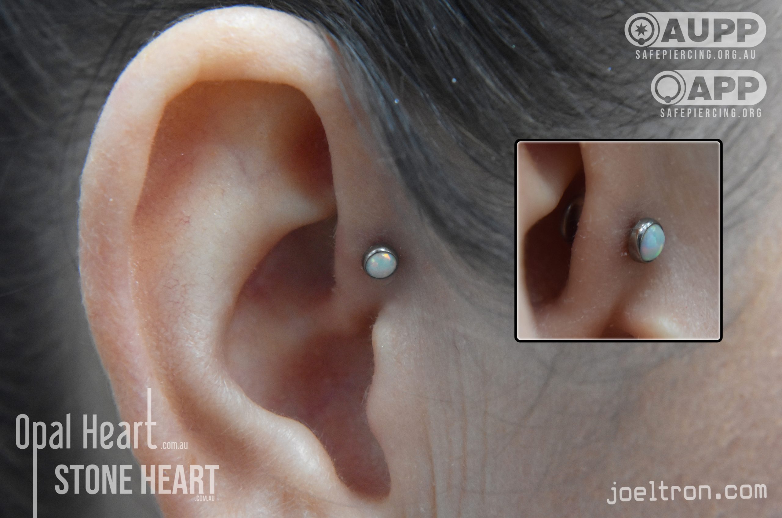Worried about the pinch? Don’t be! While the cartilage here is firm, most clients find the sensation to be a quick, sharp “zap” that’s over quickly. We start you off with an implant-grade, flat-back stud to ensure maximum comfort and a smooth healing journey.