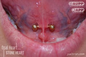 The tongue web is an anatomically dependent piercing that sits under your tongue in that little fold of tissue called the frenulum. It’s totally hidden when you talk, smile or laugh, making it the ultimate low-key but edgy piercing.