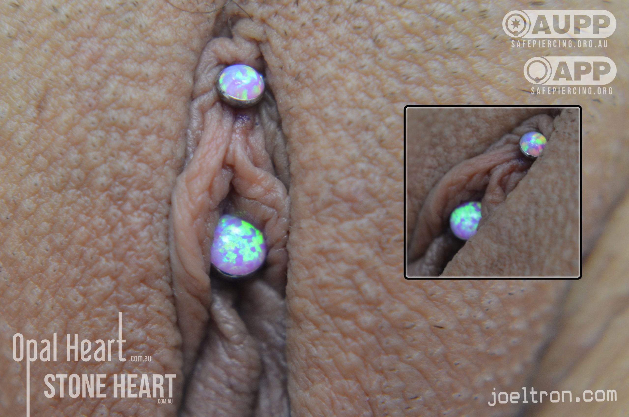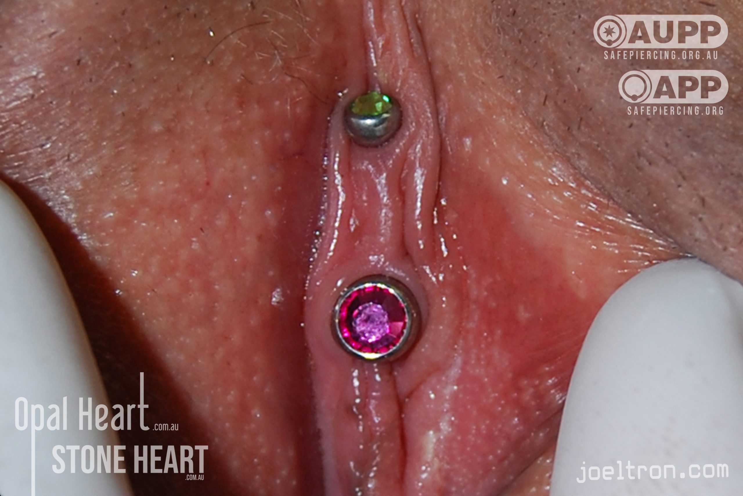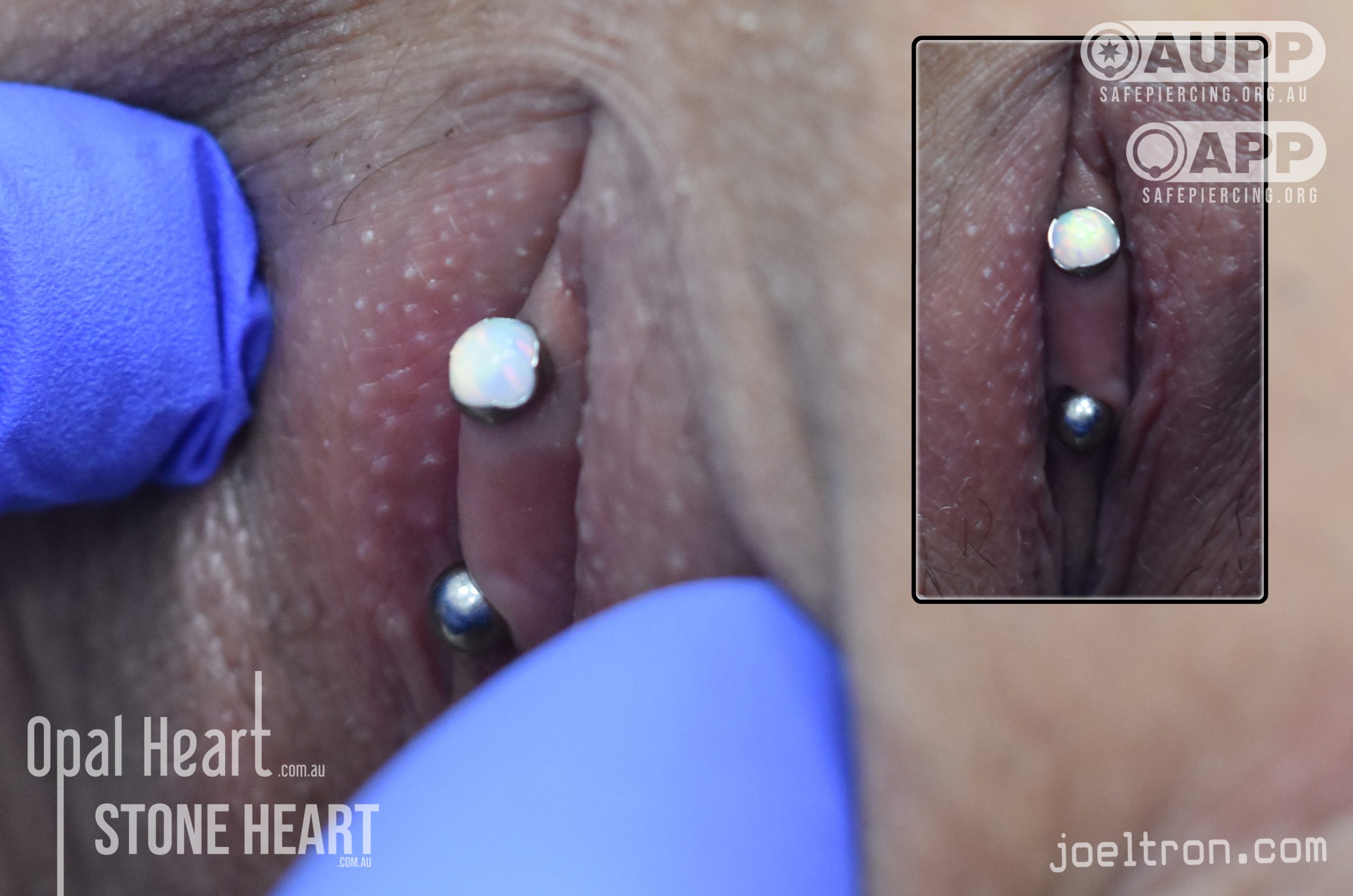 The Vertical Clitoral Hood (VCH) is the most commonly requested vulva piercing, chosen for its aesthetic appeal and the potential for increased sensation. Contrary to popular myth the VCH does not go through the clitoris but rather its thin protective tissue or “Hood”. This means that despite its intimate location, it is a surprisingly easy piercing to get done and to heal.